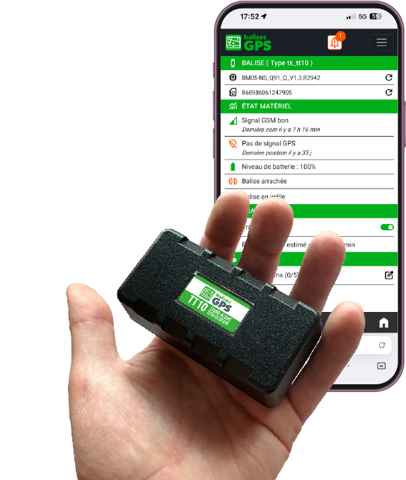 | Rapidité de mise en oeuvre | Collez la balise sur l'équipement ou l'engin à suivre grâce à son aimant, elle s'active automatiquement |